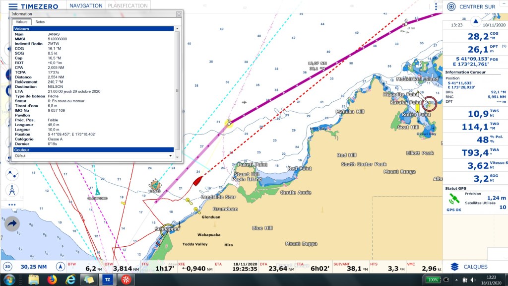 L’affichage et le suivi des cibles AIS directement sur la carte est aussi un gage de sécurité très important par rapport à un système indépendant, non seulement pour visualiser la route des navires aux alentours mais aussi parce que de plus en plus de balises cardinales et latérales sont équipées d’émetteurs AIS: c’est toujours rassurant de voir leur signal AIS se superposer gentiment avec l’icône de la marque sur la carte .